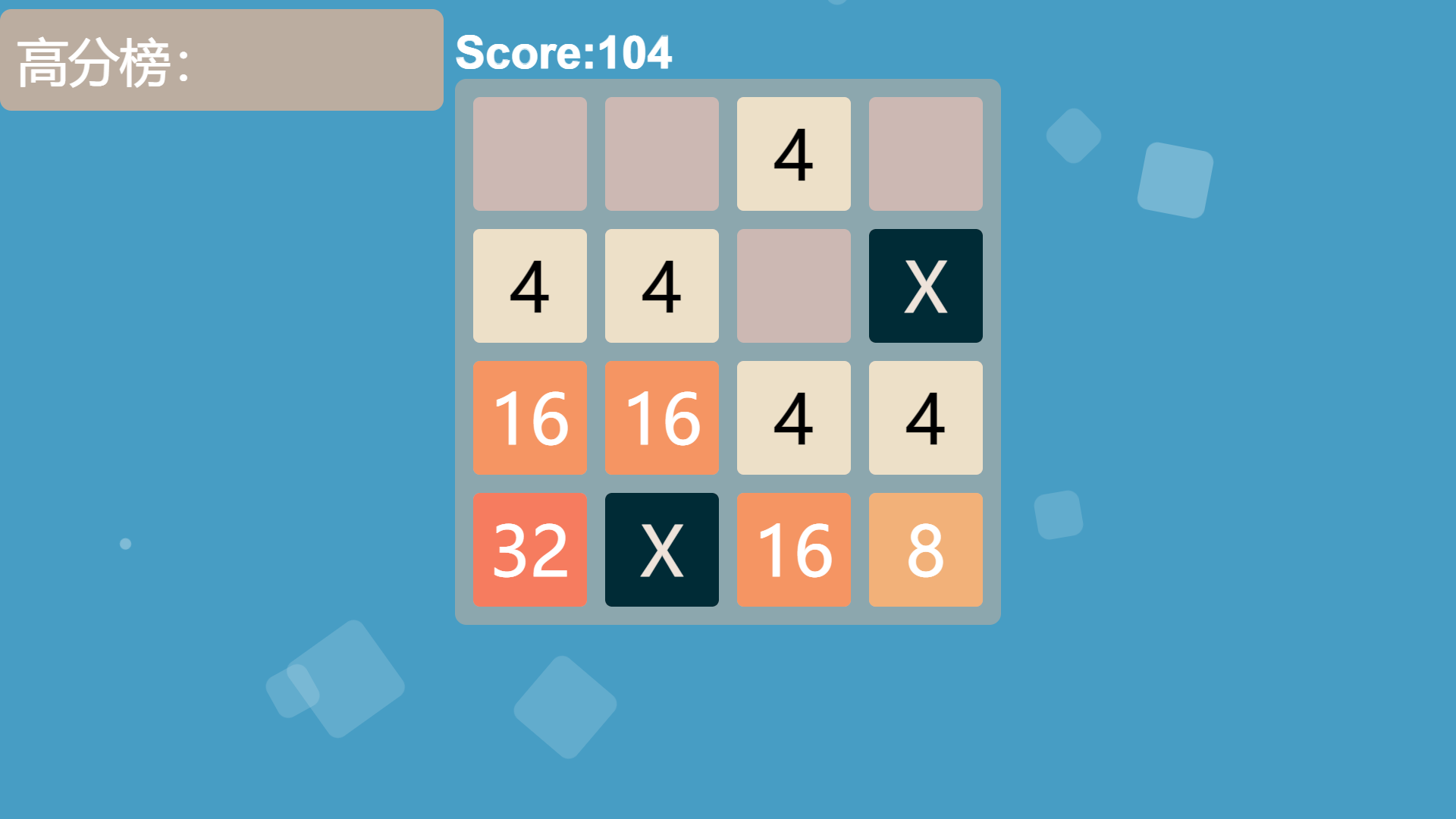 - X方块挑战模式: X方块对应着-64, 不消掉会卡位置, 两个X会合并为一个X, 但这样会扣128分