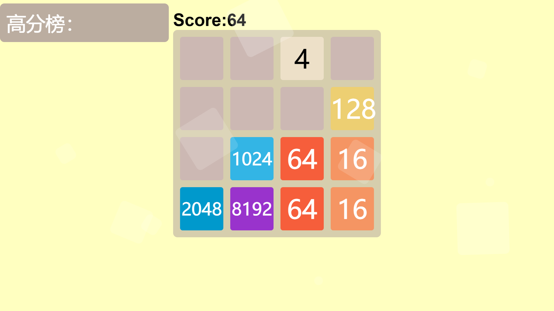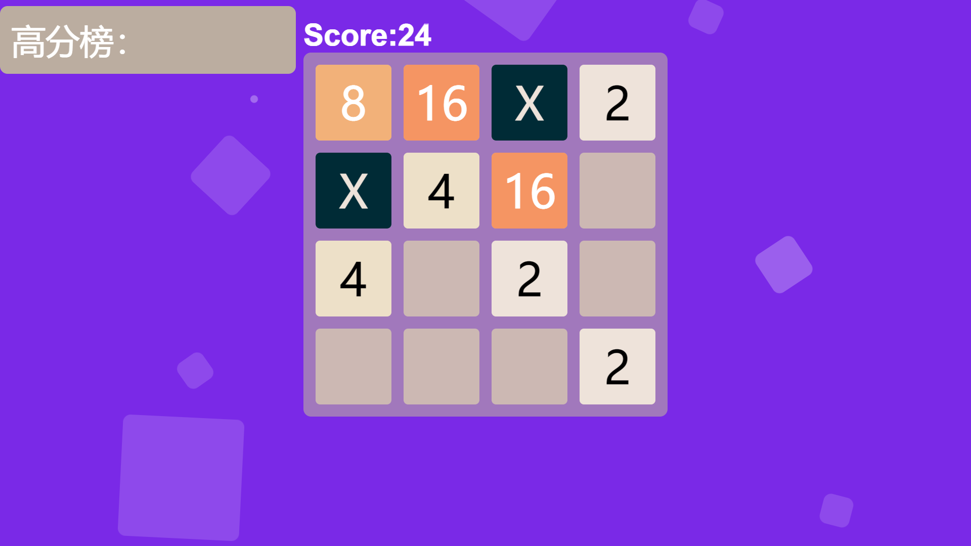 - 内容: 高中阶段制作的一款2048游戏, 共6个模式